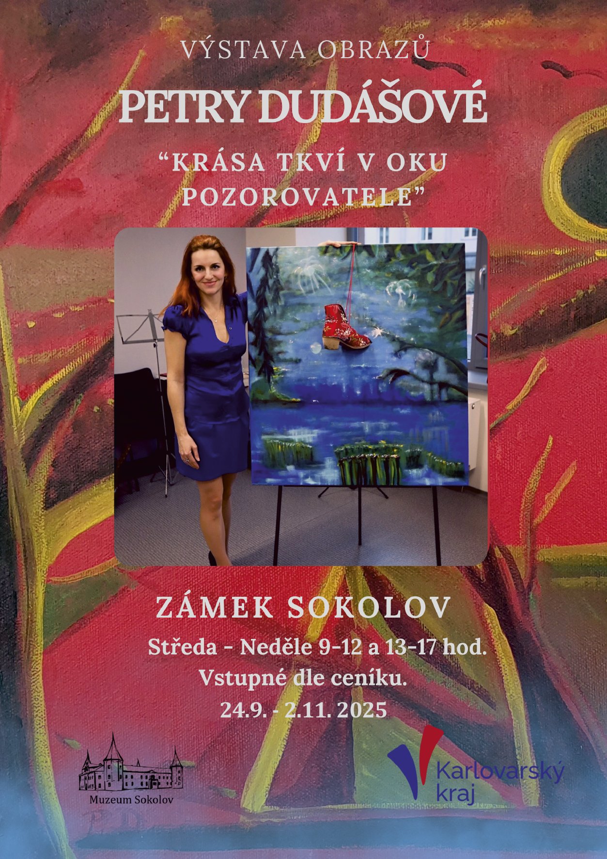 Ve dnech 24. září - 2. listopadu proběhne ve výstavním sále v 1. patře sokolovského zámku autorská výstava obrazů Petry Dudášové. Otevřeno středa - neděle 9-12 a 13-17 hodin. Vstupné dle ceníku.